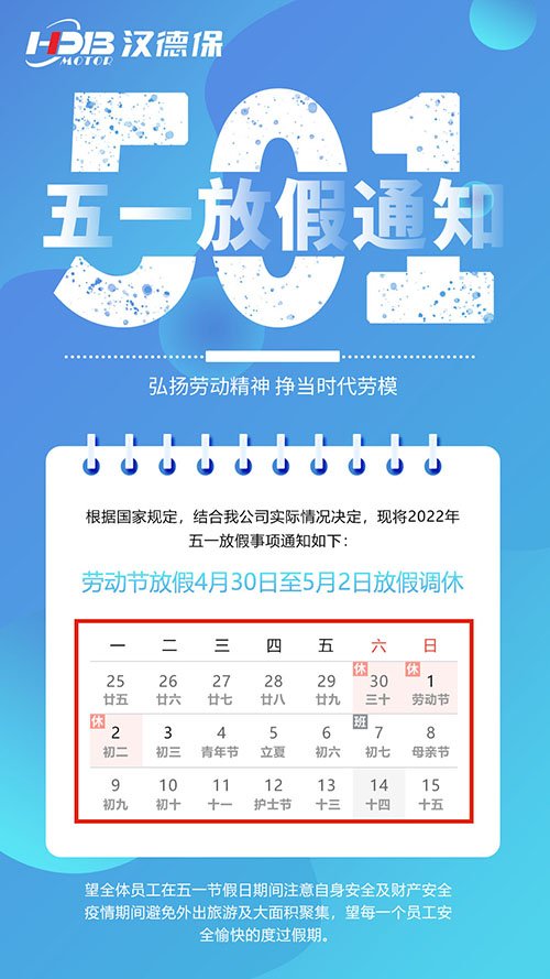 漢德保電機(jī)2022年勞動節(jié)放假通知