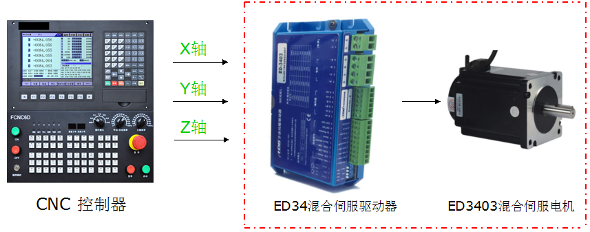 漢德保公司的配置方案為(X/Y/Z):ED34混合伺服驅(qū)動器 + EMH3403 混合伺服電機